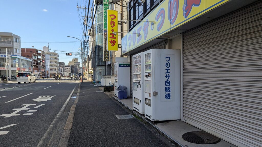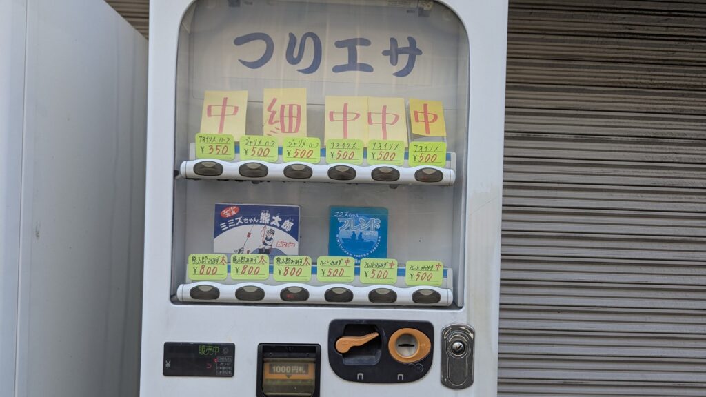 ここの何が素晴らしいかと言うと、店先にあるこの「つりエサ自動販売機」です。