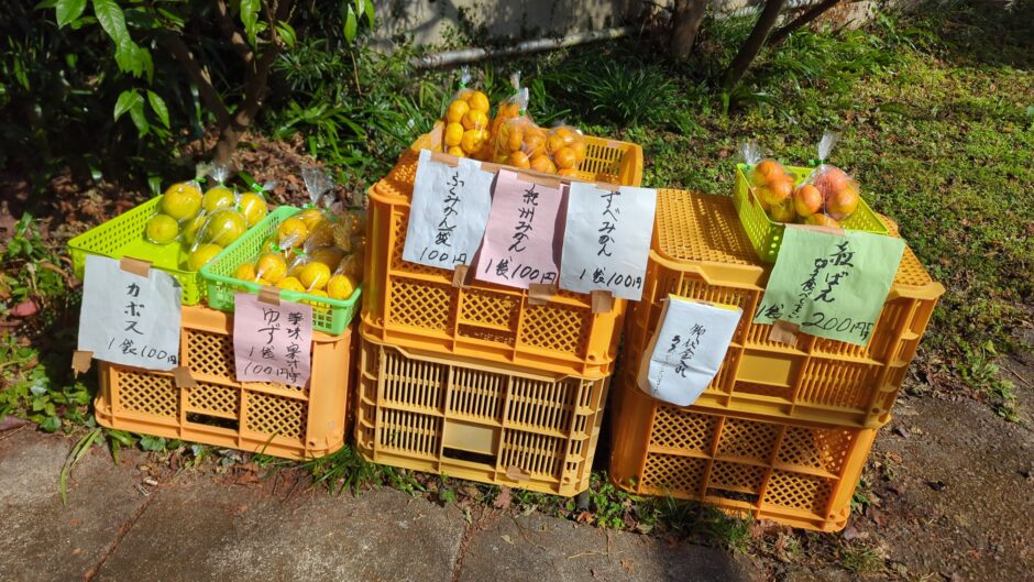 ▼30分ぐらい進むと柚子ロードがあって歩いているだけで柚子の香りがします。癒しですね。