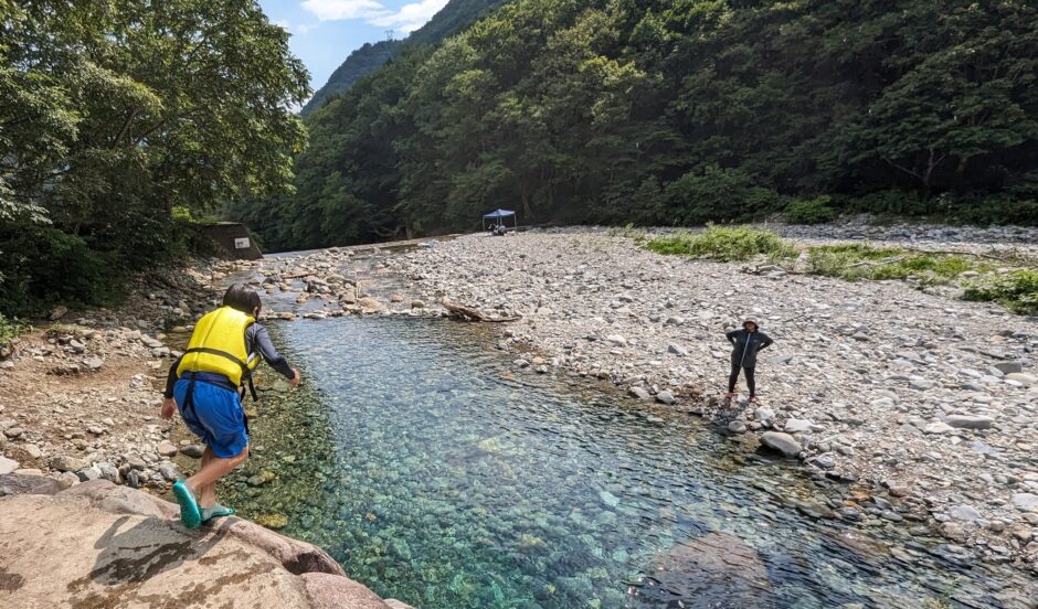 【群馬県川遊び】湯檜曽公園でエメラルドグリーンの清流に飛び込む!