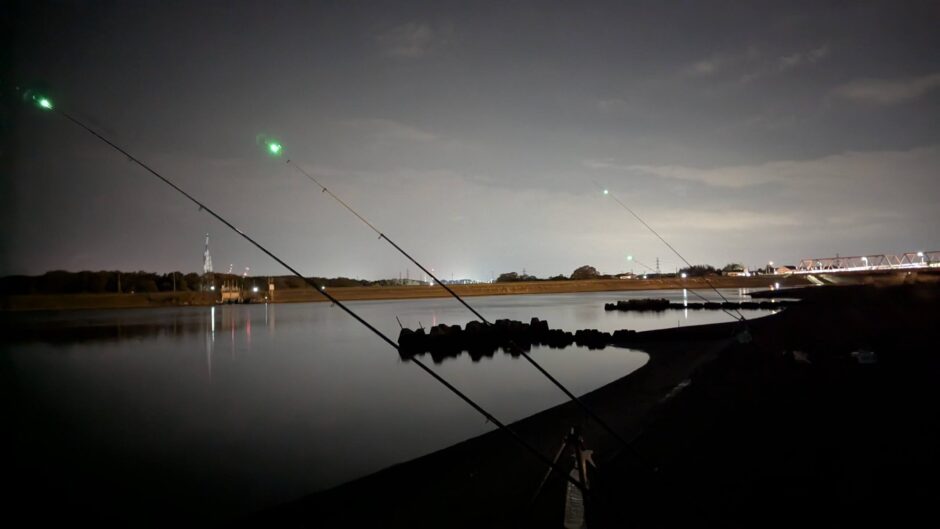 快適な車内(またはテント)から竿先を眺め、鈴がチリン!と鳴ったら車外へ出て合わせる。