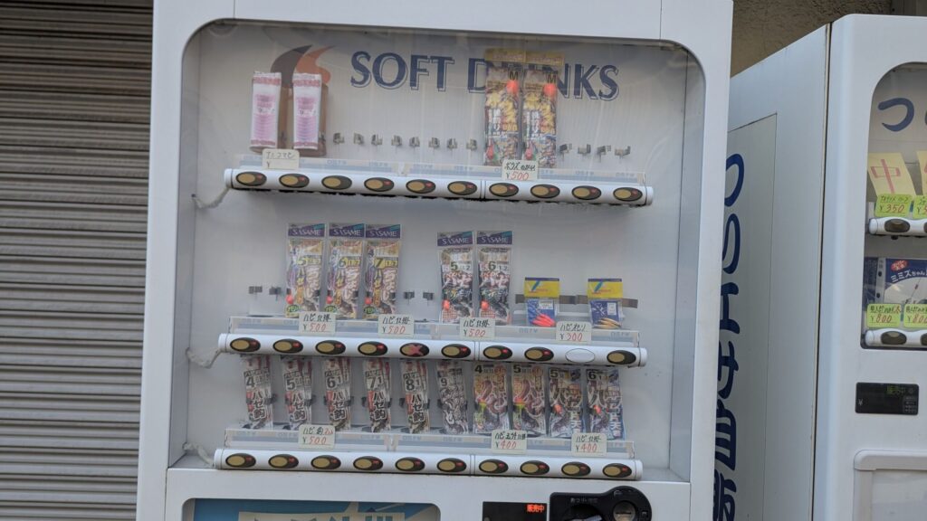 釣り場から一番近くでハゼの大好きな青イソメを自販機で24時間、購入できます。