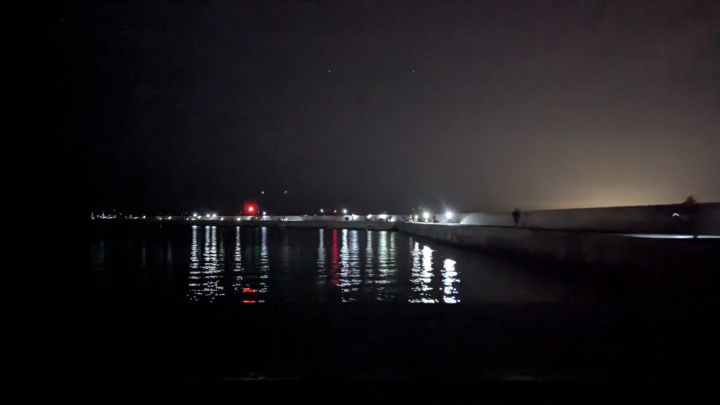 尺アジの回遊ルートを考えると、どうしても潮通しの良い「新港の先端」を確保する必要があります。ここはまさにプラチナチケット。次に優先すべきは海側です。こちらの方が釣れる確率が高い!